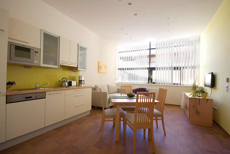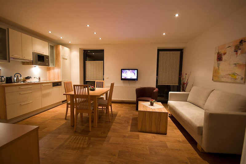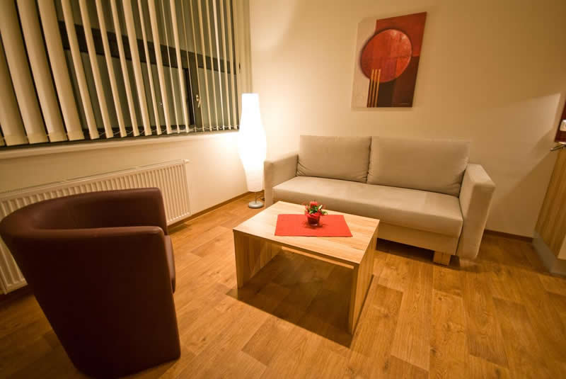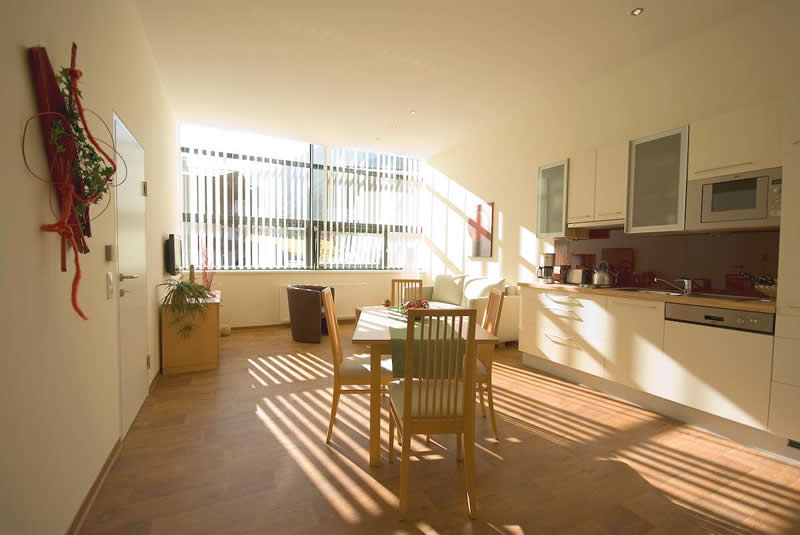 - Apartment mit moderner, zeitgemäßer Ausstattung und großen Panoramafenstern aus Glas bzw. Metall